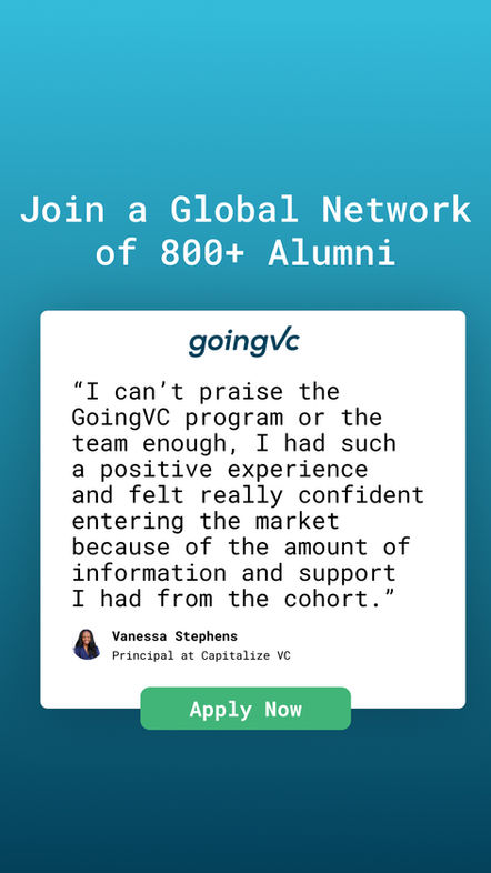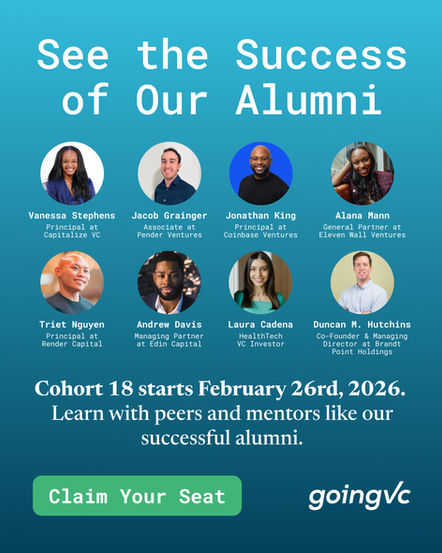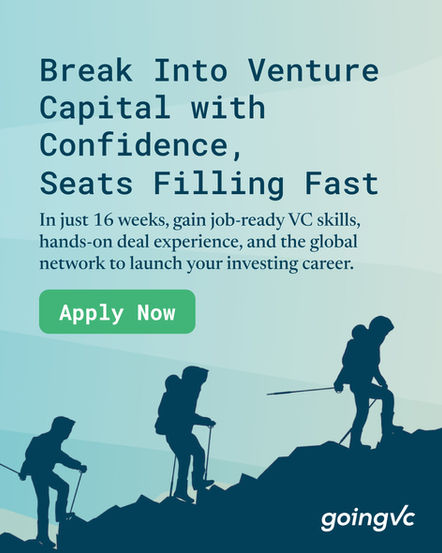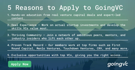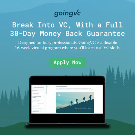 GoingVC is a venture capital career accelerator focused on helping professionals break into VC through education, real-world experience, and networking.
